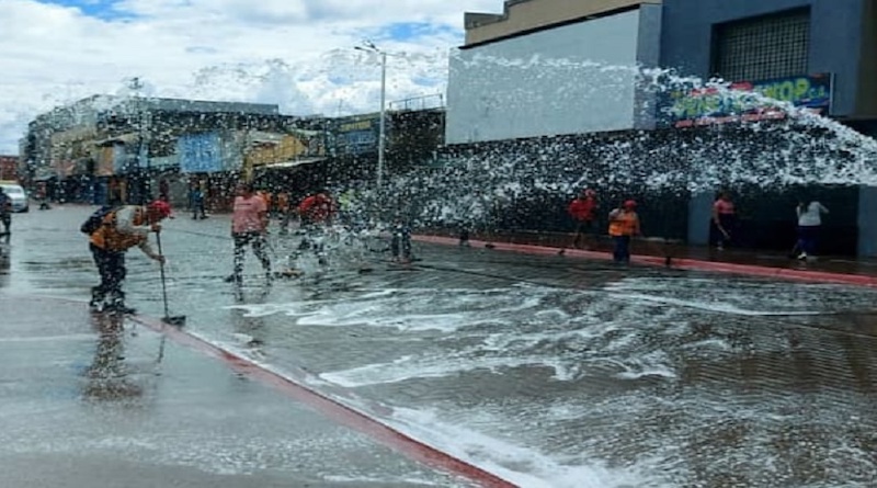 El concurrido paseo comercial capitalino, como es tradición, fue saneado con agua y jabón desde bien temprano; también recolectaron la basura de la vía principal y calles transversales, divulgó el diario Últimas Noticias.