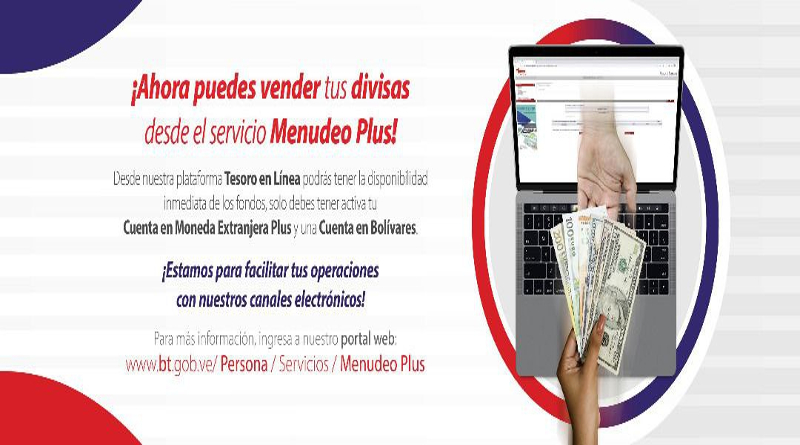 El Banco del Tesoro (BT) habilitó el servicio Menudeo Plus en su página web para permitir a los clientes vender sus divisas y así recibir de forma inmediata los bolívares que necesita en su cuenta de ahorro o corriente.
