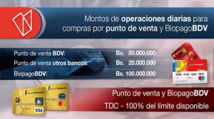 Mediante una nota de la institución bancaria, se indicó que para compras por punto de venta del BDV se podrá transar hasta Bs. 50.000.000; mientras que para otros bancos el monto será de Bs. 20.000.000 y a través de BiopagoBDV la cifra se ubica en 100.000.000 bolívares.
