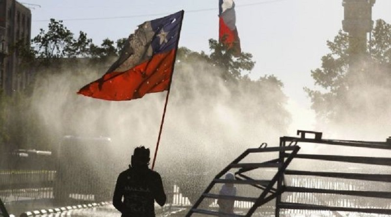 En Chile, la Policía reprimió con cañones de agua varias manifestaciones en contra del presidente, Sebastián Piñera, a quien exigen su renuncia, luego que miles de personas fueron convocadas a un cacerolazo en las inmediaciones del Palacio de la Moneda, para reiterar sus reclamos contra el Ejecutivo .