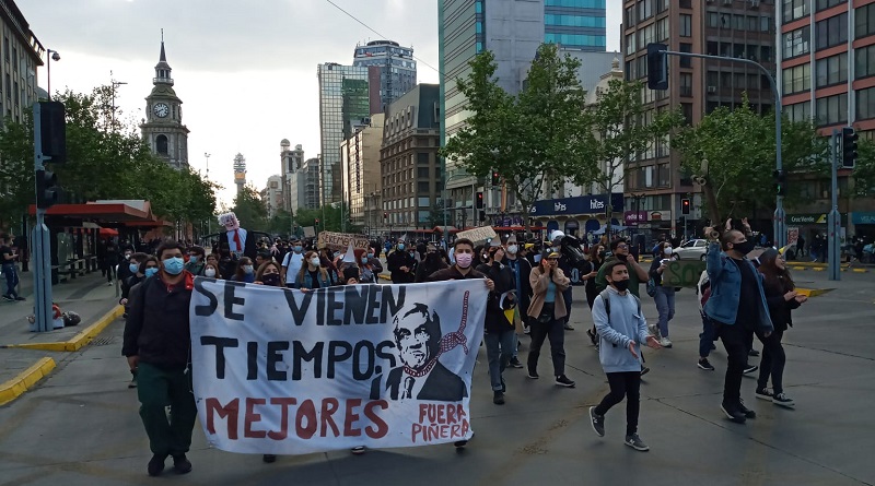 En la jornada de movilizaciones del viernes, otros manifestantes se encaminaron hacia la plaza Baquedano de Santiago, convertida en el eje de las protestas antigubernamentales que estallaron en octubre de 2019. Desde allí, los inconformes exigieron, a través de pancartas, la destitución de Piñera y la libertad de los presos políticos de las revueltas.