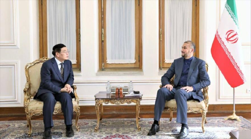 Tras sostener una reunión, el ministro de Relaciones Exteriores de Irán, Hosein Amir Abdolahian, y el comisionado de Seguridad Exterior del Ministerio de Relaciones Exteriores de China, Cheng Guoping, revisaron el programa de cooperación integral conjunta para resaltar los aspectos más relevantes.