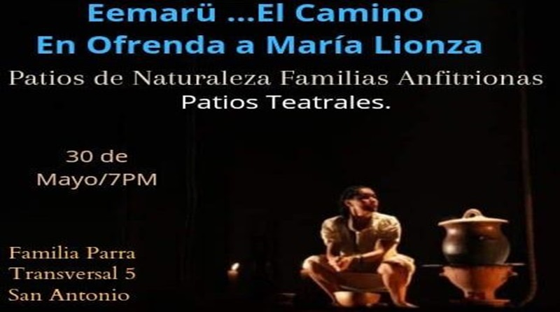 La Agrupación Teatral Coordinación pondrá en escena su propuesta teatral de los “Patios teatrales, de naturaleza o familias anfitrionas”, con la obra “Eemarü, el camino en ofrenda a María Lionza”, que ya ha recorrido los municipios Independencia, Cocorote, Manuel Monje y Bruzual, del estado Yaracuy.