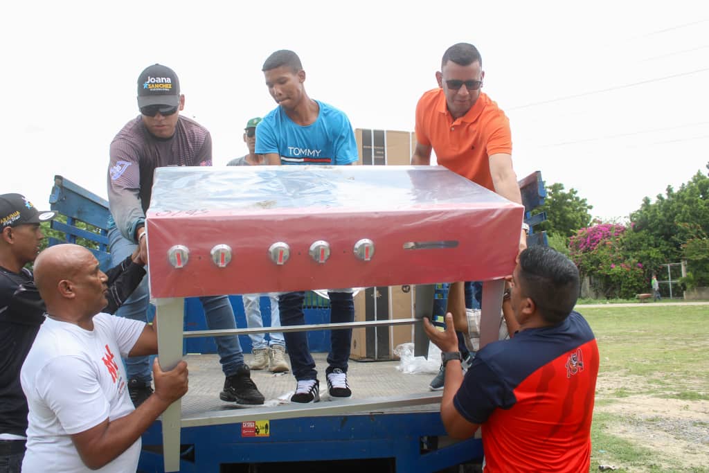 La dotación entregada incluyó escritorios, sillas, pizarras acrílicas, cocina y licuadora industrial, freezer de 250 litros, nevera, calderos, coladores, cucharones, ollas de 40 y 60 litros, pinzas, sartenes, tablas para picar, tenedores grandes, entre otros insumos, los cuales fueron verificados por docentes, representantes, estudiantes y miembros de la comunidad.