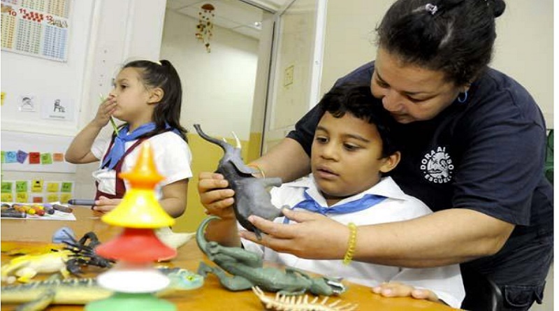 Esta es una educación que lleva muchos recursos, no solo humanos, sino también materiales y Cuba garantiza que los niños que los necesiten accedan a ellos de manera gratuita y con un alto nivel profesional, agregó.