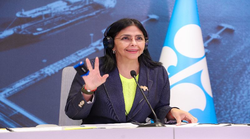 La vicepresidenta Ejecutiva de la República Bolivariana de Venezuela y ministra de Hidrocarburos, Delcy Rodríguez, participó por videoconferencia en la 62ª Reunión del Comité Ministerial de Monitoreo Conjunto de la OPEP y OPEP+, donde las autoridades revisaron las acciones más recientes en el mercado petrolero global de los países miembros que participan en la declaración de cooperación.