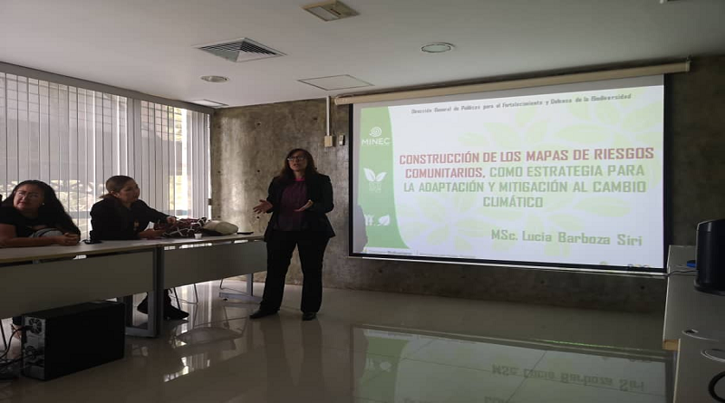 Durante la ponencia, la ingeniero geóloga y asesora de la Dirección de Fortalecimiento y Defensa de la Biodiversidad del Ministerio del Poder Popular para el Ecosocialismo, Barboza Siri, explicó que el fin primordial de este encuentro fue ofrecer a los participantes, nuevas metodologías en la creación de mapas de riesgo comunitarios