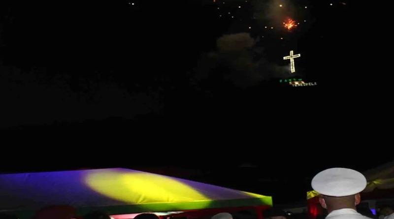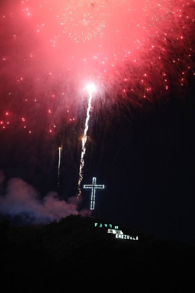 Y, antes de proceder a ordenar vía radio el encendido del símbolo de la cruz en la cima de una colina en Fuerte Tiuna, pidió al Todopoderoso y al Mesías, que su nacimiento en la Nochebuena derrame bendiciones sobre Venezuela y el planeta.