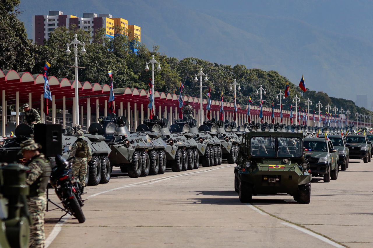 El despliegue incluyó un grupo de vehículos de reconocimiento ligero 8×8 Norinco ATV CS/VP4, de procedencia china; transportes blindados anfibios BTR-80A, de fabricación rusa; aunado a carros Tiuna UR-53AR50, de elaboración venezolana.