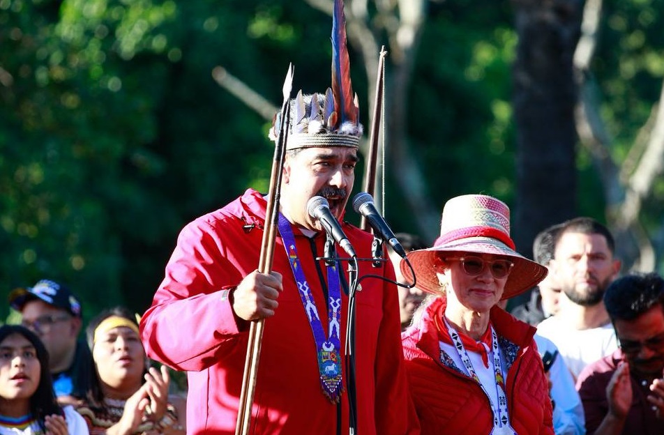 La actividad se llevó a cabo en la autopista Gran Cacique Guaicaipuro, en Caracas, donde el mandatario nacional recibió una multitudinaria marcha de representantes indígenas provenientes de distintas regiones del país.