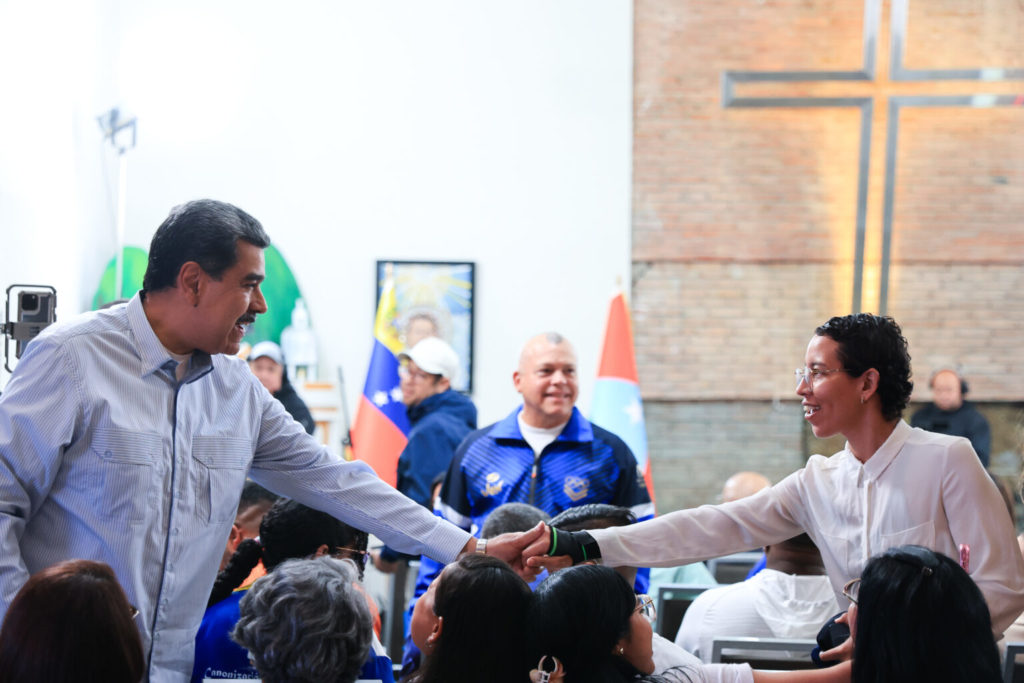 En esta vigilia por la canonización de los santos venezolanos lo acompaña la vicepresidenta Ejecutiva de la República, Delcy Rodríguez; el vicepresidente del Partido Socialista Unido de Venezuela (PSUV) para Asuntos Religiosos, Nicolás Maduro Guerra, y hombres y mujeres de la parroquia La Pastora, en Caracas.
