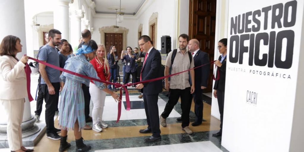 Este jueves, el ministro del Poder Popular para Relaciones Exteriores, Jorge Arreaza, inauguró la exposición fotográfica Nuestro oficio en los espacios de la Casa Amarilla Antonio José de Sucre en el centro de Caracas, la cual exhibe las obras de siete fotógrafos venezolanos que captaron a través de sus lentes la realidad venezolana, pasando por la urbe caraqueña hasta llegar a los llanos y la costa.