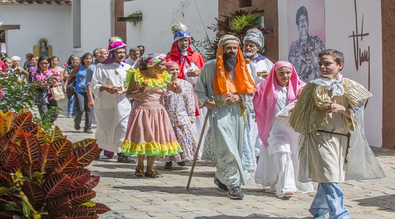 Para finalizar, el Teatro Ambulatorio y la Parranda del Instituto Nacional de Servicios Sociales (INASS), de la mano de sus directores Sergio José Álvarez Calderón, el profesor René Plaza y todos sus integrantes, iluminaron el escenario en el patio del secado con una puesta en escena del nacimiento viviente.