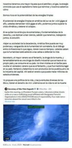 ​»Secretario, el mayor veneno es el fentanilo, la droga de la muerte, y lamentablemente es una droga de diseño industrial que se hace en su propio país y se consume en su país… Fentanol y ketamina no son productos de los pueblos, sino de la industria del capital. Ahí está el veneno que puede matar millones de estadounidenses», concluyó Petro, instando a EE. UU. a «alejar su sociedad de la decadencia».