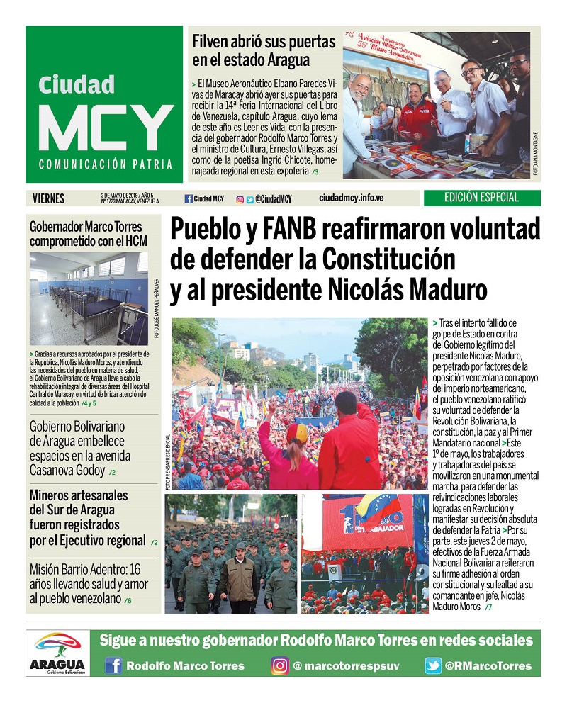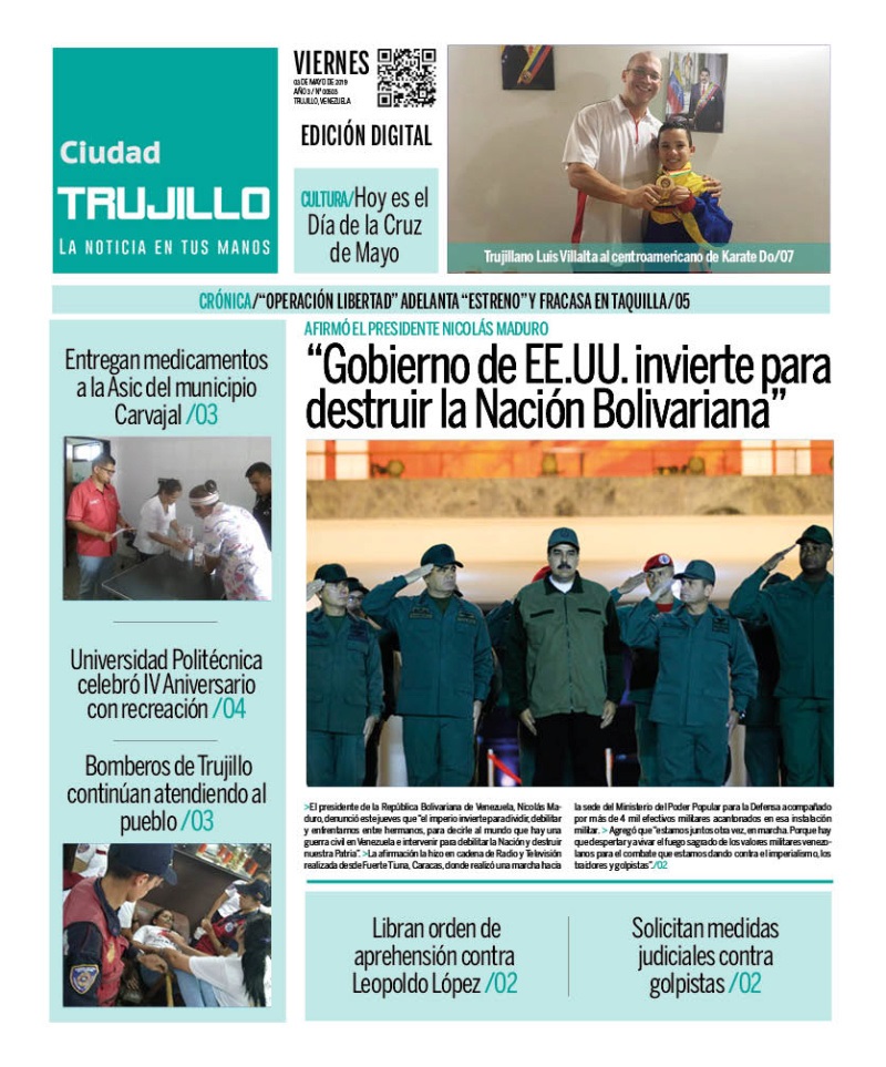 Caracas, 3 de mayo de 20193 de mayo de 2019 VTV 3 de mayo, Ciudad Barquisimeto, Ciudad Caracas, Ciudad Guárico, Ciudad Maracay, Correo del Orinoco, Líder, Meridiano, Últimas noticias, Venezuela, VTV