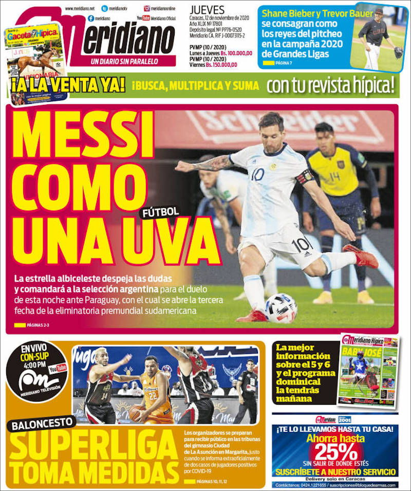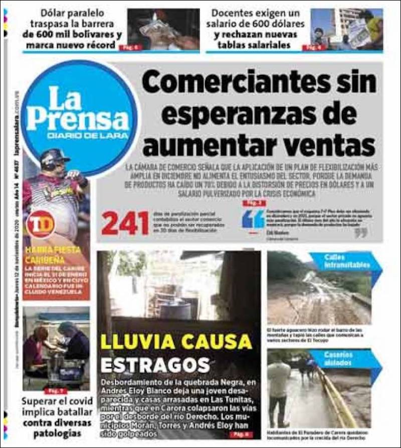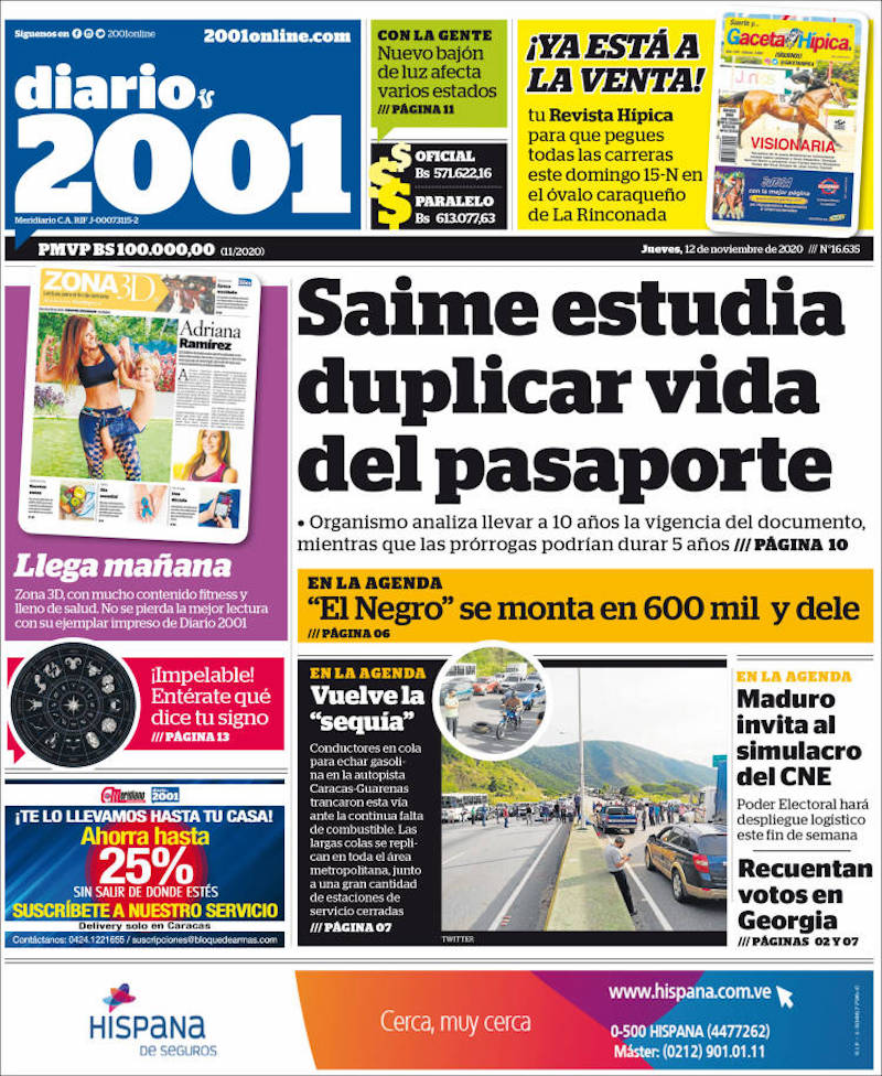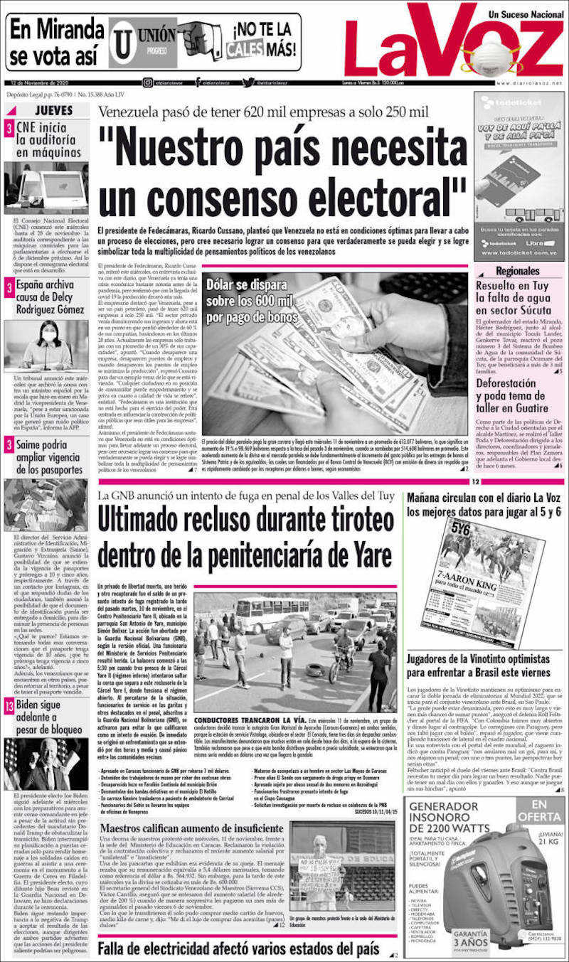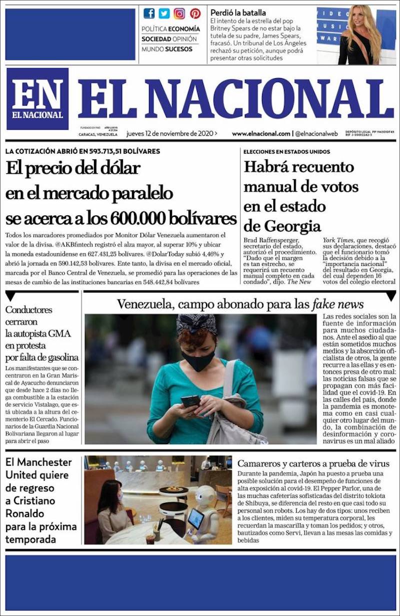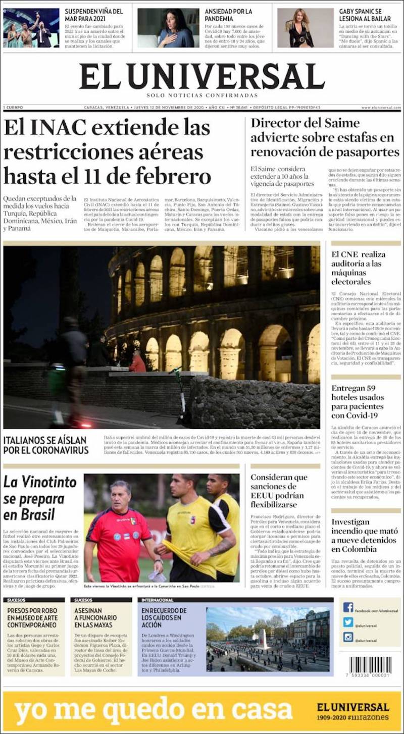 Lea aquí los titulares reflejados en las portadas de los medios impresos y digitales que circulan en Venezuela este jueves 12 de noviembre de 2020.