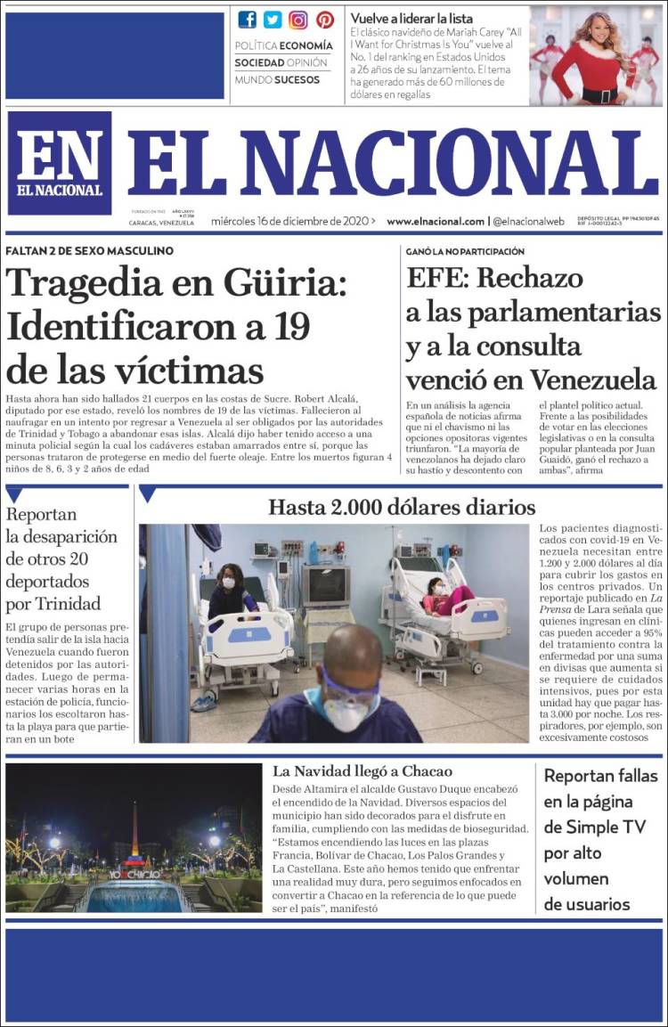 Lea aquí los titulares reflejados en las portadas de los medios impresos que circulan en Venezuela este miércoles 16 de diciembre de 2020.