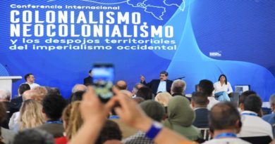 Durante la clausura de la Conferencia Internacional Colonialismo, Neocolonialismo y los Despojo, efectuada en Caracas, expresó que la nación venezolana ha enfrentado una guerra multiforme, política, eléctrica, psicológica, y pese a eso ha salido adelante con la verdad y junto a pueblo.