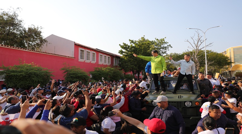Este jueves, el pueblo revolucionario del estado Falcón desbordó las calles para dar la bienvenida y respaldar al presidente de la República Bolivariana de Venezuela, Nicolás Maduro Moros, en una nueva demostración popular del sentimiento nacional que acompaña al jefe de Estado en sus actividades de trabajo en las regiones del territorio venezolano.