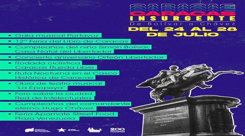 Semana de Caracas Insurgente de Bolívar a Chávez se celebrará con variada programación del 24 al 28JUL