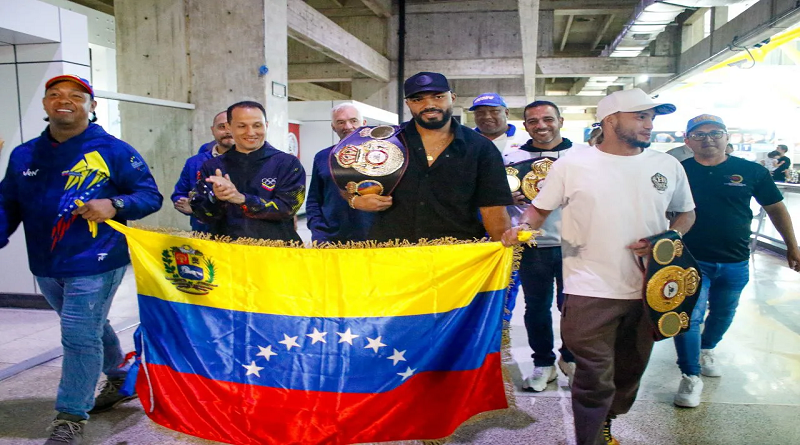 El campeón venezolano Albert Ramírez fue recibido este martes con aplausos, ovaciones y banderas en el Aeropuerto Internacional de Maiquetía,