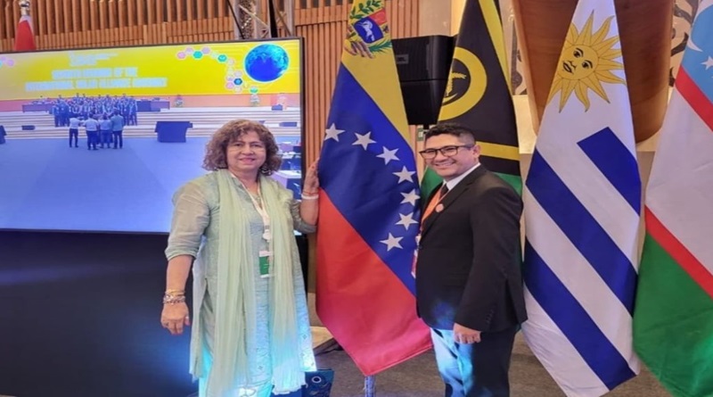 Venezuela se hizo presente en la séptima Asamblea Alianza Solar Internacional (ISA), que se realizó en el Centro Internacional de Convenciones Bharat Mandapam, de Nueva Delhi, capital de la República de La India, con una delegación encabezada por el viceministro para el Desarrollo del Sector y la Industria Eléctrica del Ministerio del Poder Popular para Energía Eléctrica (MPPEE), Carlos Alfredo González, que estuvo acompañada por la embajadora de la República Bolivariana de Venezuela en esa nación, Capaya Rodríguez.