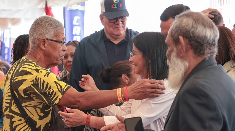 La vicepresidenta Ejecutiva de la República Bolivariana de Venezuela, Delcy Rodríguez, lideró este sábado 4 de enero, desde la parroquia San Agustín de Caracas, una jornada de Feria del Campo Soberano, donde destacó el trabajo de todos los venezolanos para apoyar al presidente de la República Bolivariana de Venezuela, Nicolás Maduro, el próximo 10 de enero.