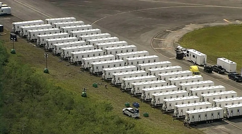 Ubicado en el sur de Florida, diseñado para albergar hasta cinco mil migrantes indocumentados y construido tras dos semanas sobre la pista de un aeropuerto abandonado a un costo de más de 450 millones de dólares.